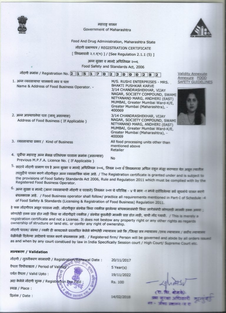 Our Product is FSSAI certified We adhere to all norms required by the regulatory bodyFSSAI number :21517023000282